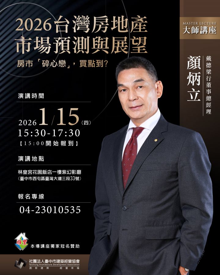 ➌演講主題:2026台灣房地產市場預測與展望 | 房市『碎心戀』,買點到?
