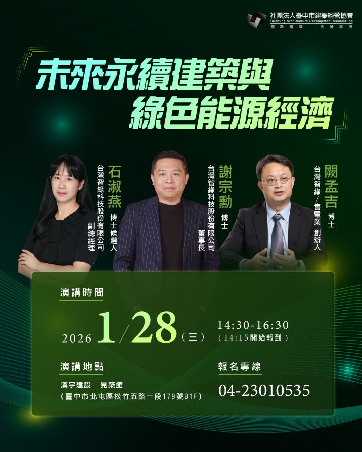 三、演講主題:『未來永續建築與綠色能源經濟』
