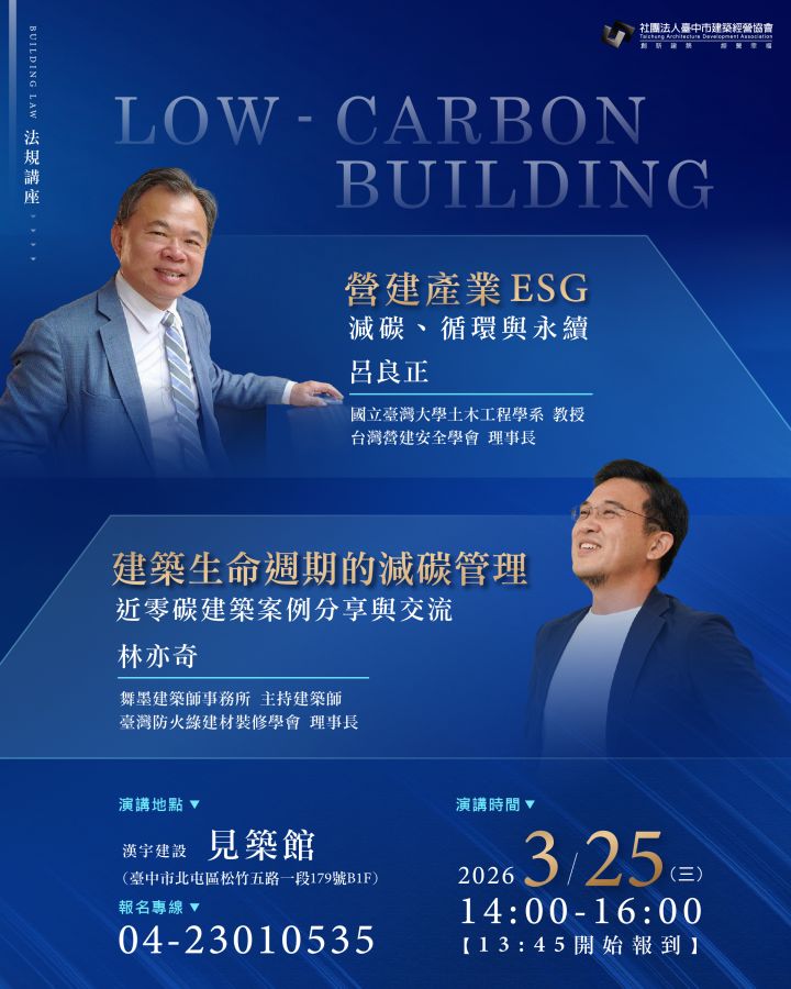 ➍演講主題:營建產業ESG︰減碳、循環與永續