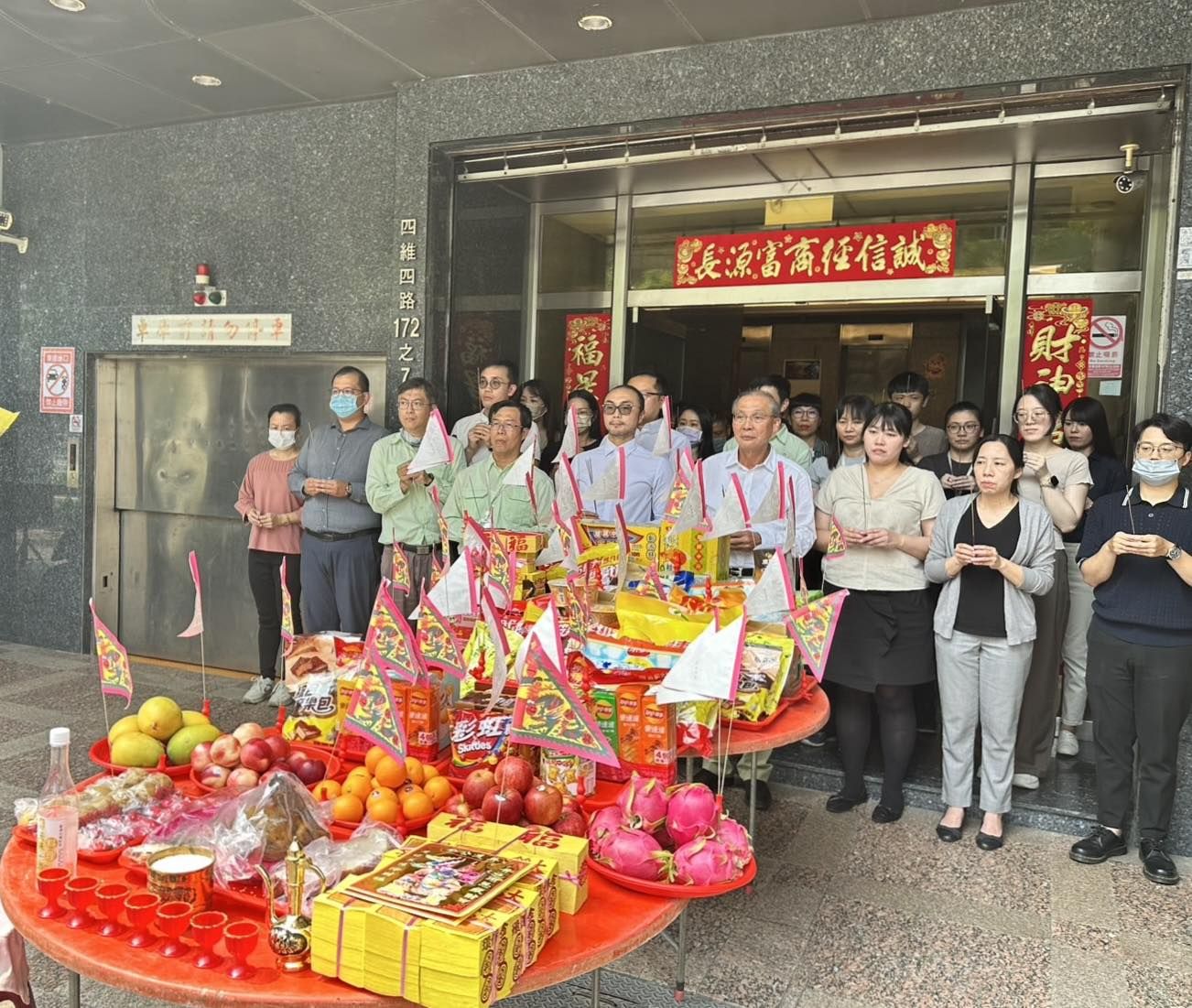 在董事長的帶領下舉辦傳統普渡祭拜儀式,