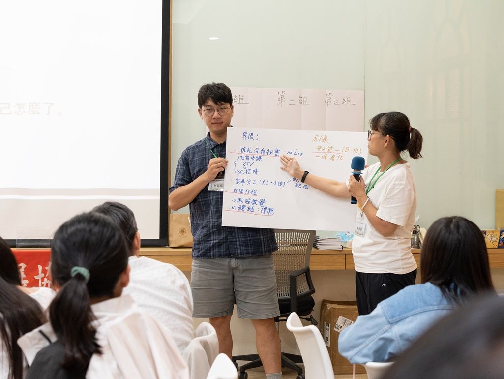 本次課程由輔導老師 蔡佩珊與諮商心理師 林仁廷擔綱講授。上半場聚焦「青少年憂慮來源」及「自我覺察與照顧」,幫助參與者理解孩子的心理壓力來源,並學習覺察自我情緒。下半場則引導父母找到教養定位,進一步培養孩子的耐挫力與心理韌性。