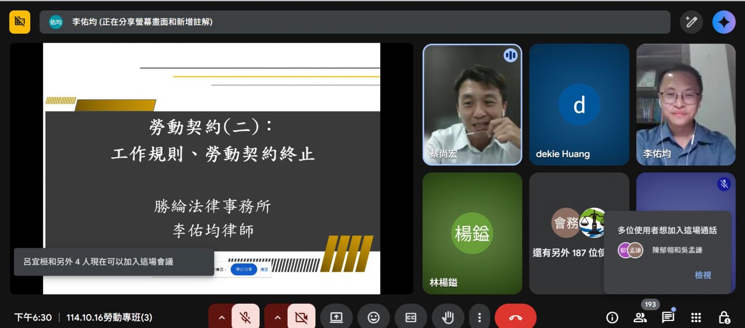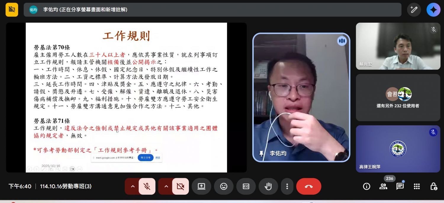 114年10月16日114年度勞動律師專業課程培訓班第3堂