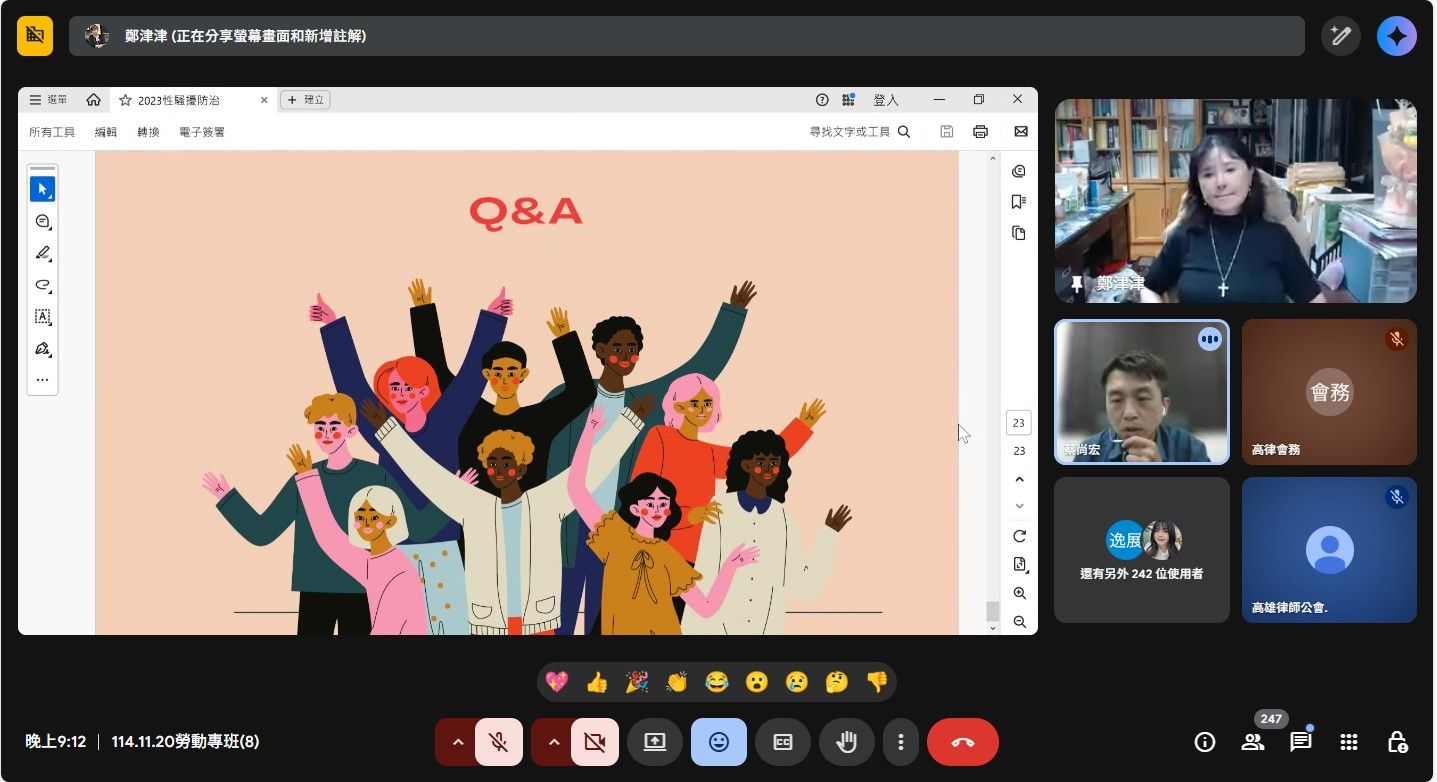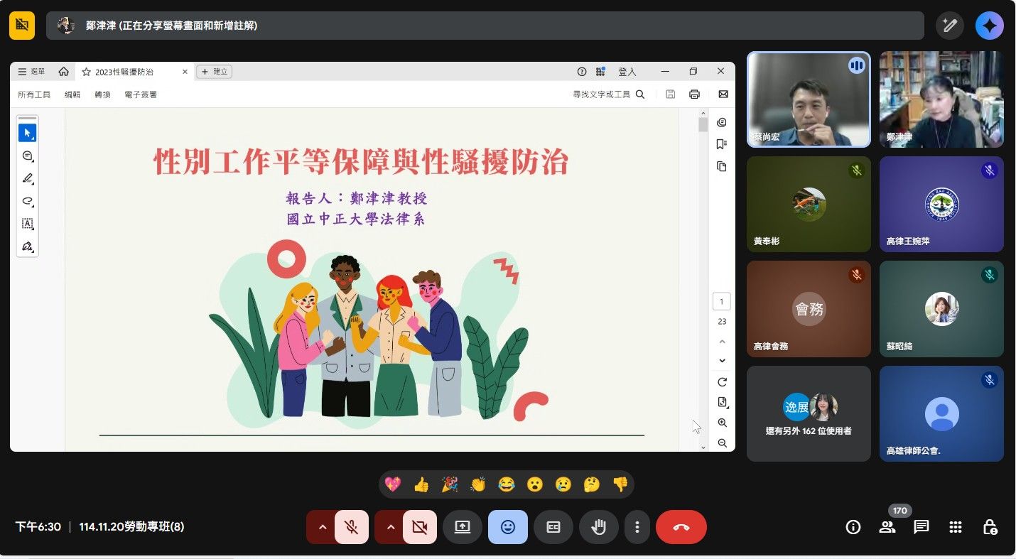 114年11月20日114年度勞動律師專業課程培訓班第8堂視訊課程
