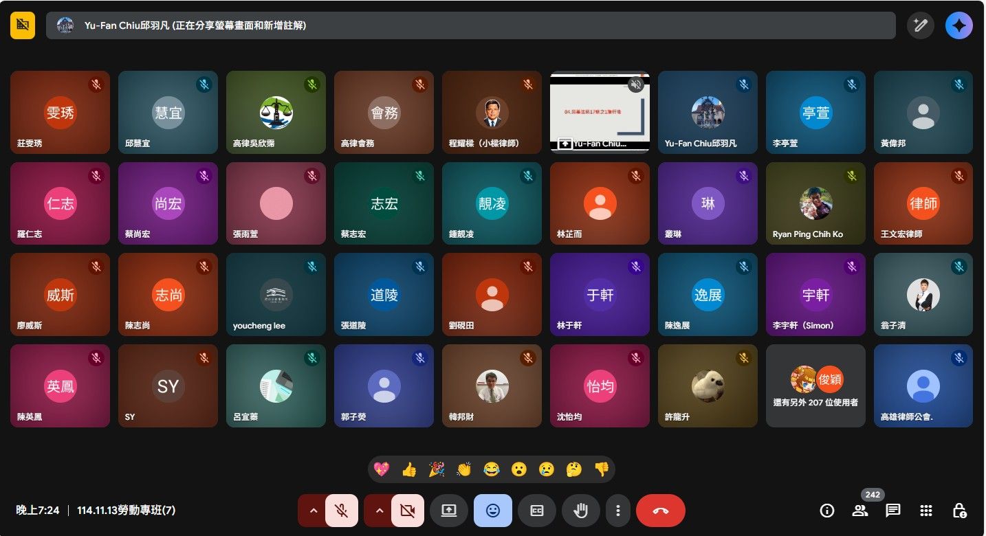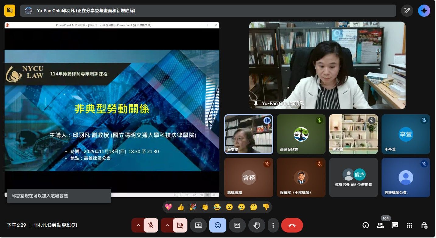 114年11月13日114年度勞動律師專業課程培訓班第7堂視訊課程