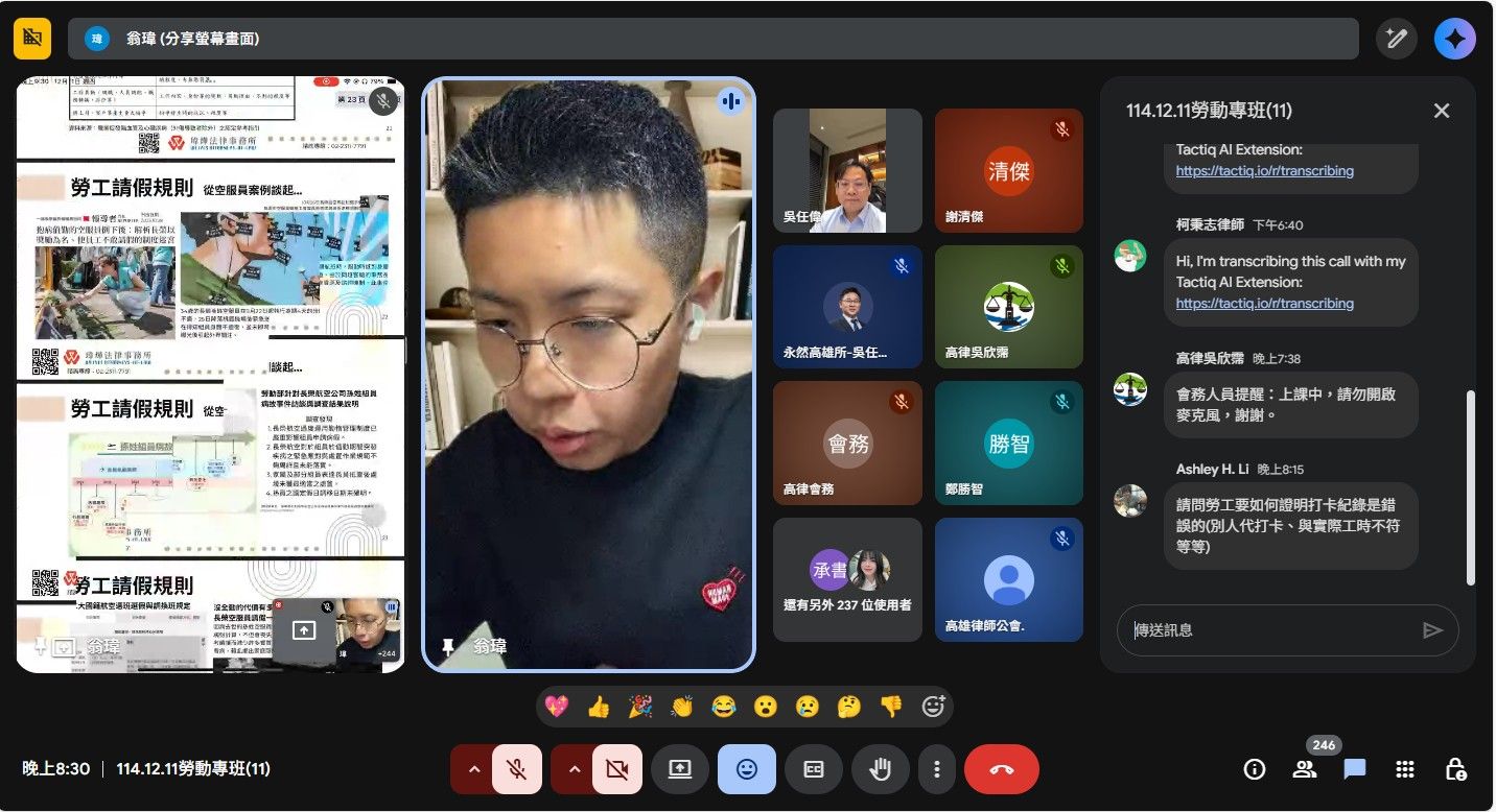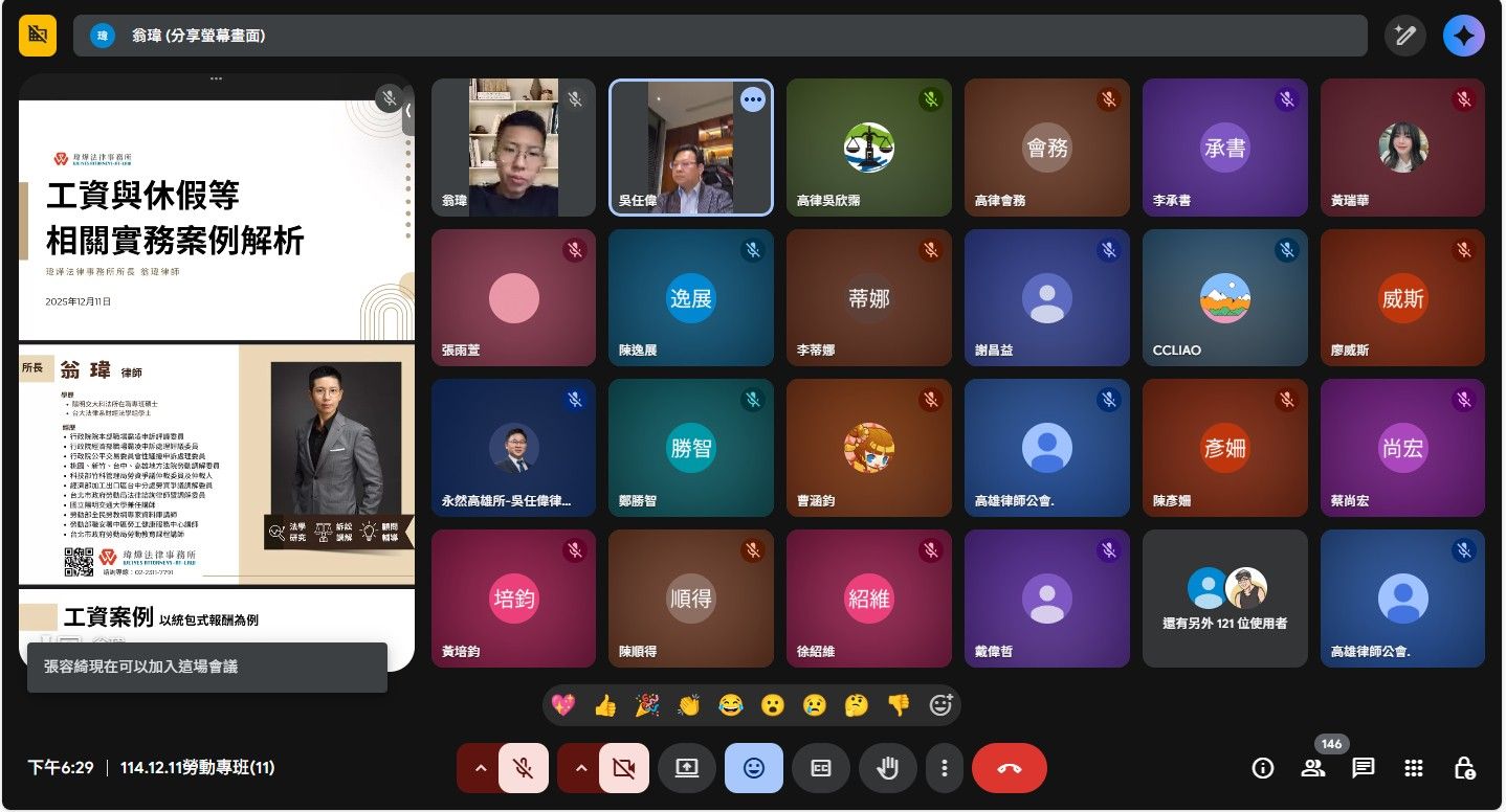 114年12月11日114年度勞動律師專業課程培訓班第11堂視訊課程