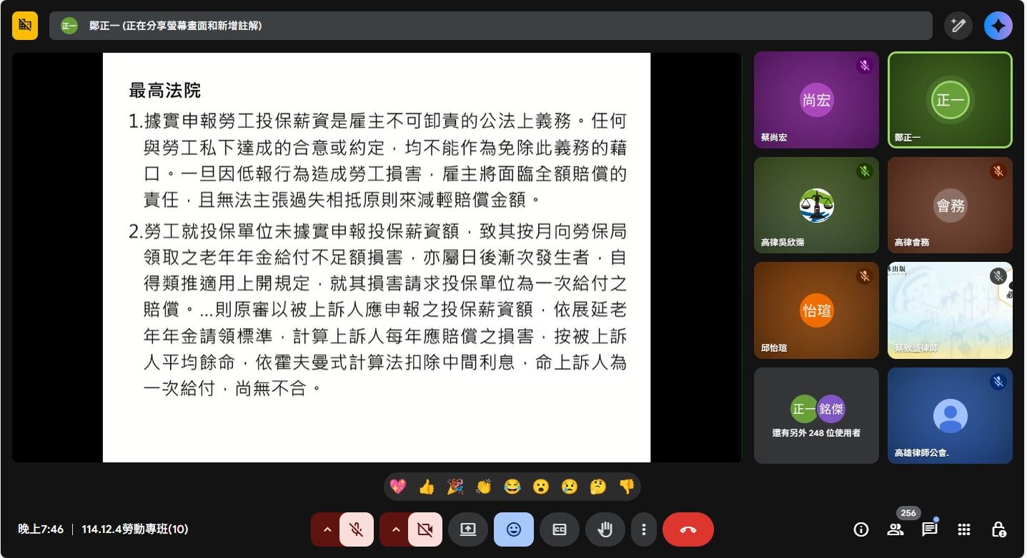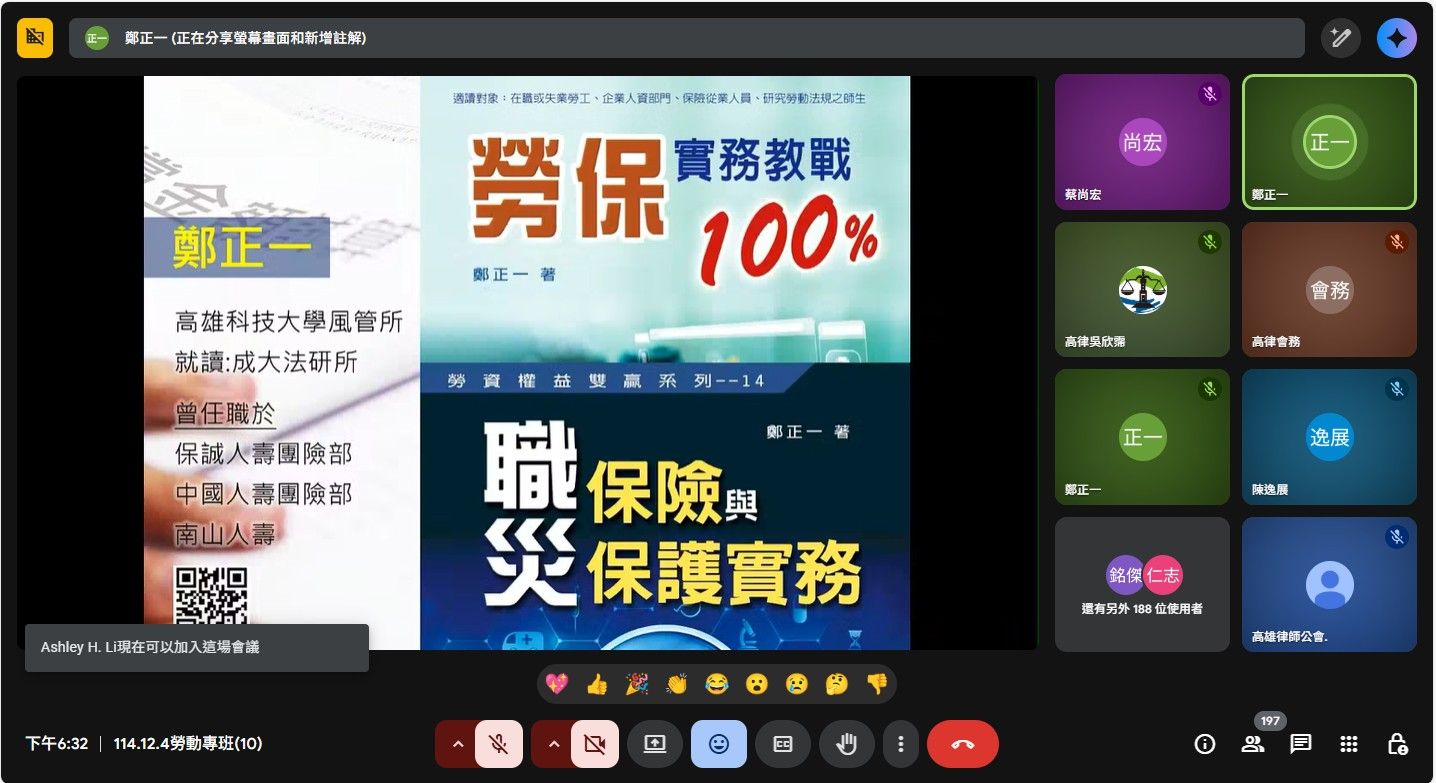 114年12月4日114年度勞動律師專業課程培訓班第10堂視訊課程