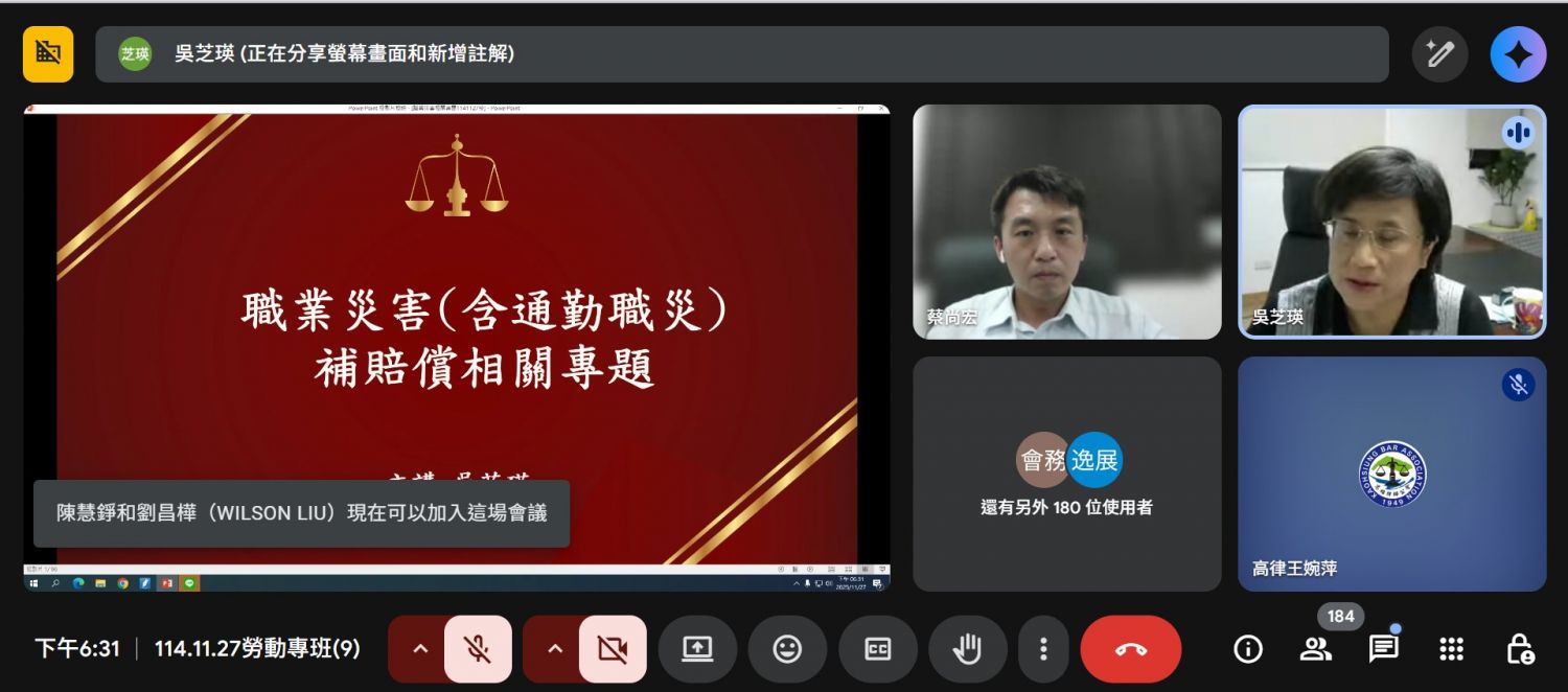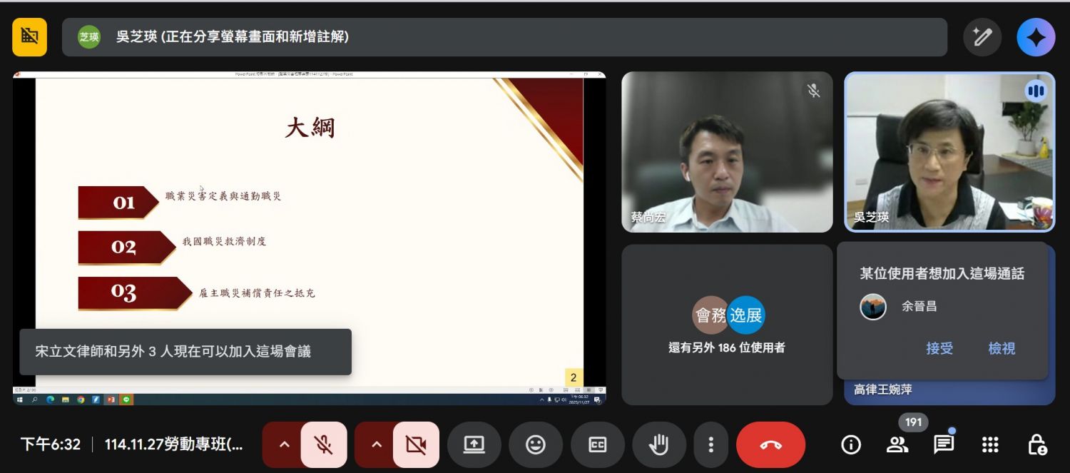 114年11月27日114年度勞動律師專業課程培訓班第9堂視訊課程